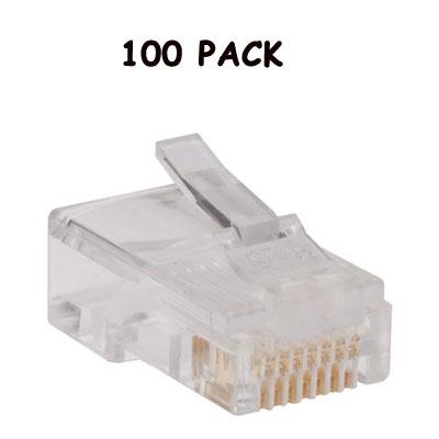 100PK RJ45 Plugs Round Solid Strand Conductor 4PR Cat5e Cable