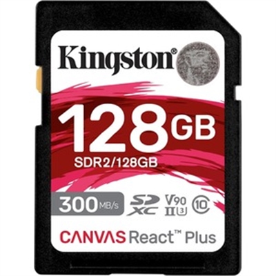 Kingston SD Memory 128GB Canvas React Plus SDXC UHS-II 300R/260W U3 V90 for Full HD/4K/8K