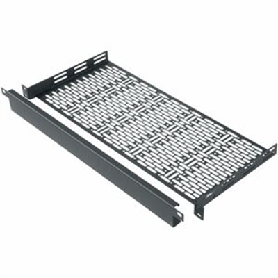 Universal Face-After shelves designed to mount small items conveniently in the front or rear of a rack while providing outstanding cable management and small device tie down points. These shelves feature the unique ability to mount a faceplate after the shelf is installed and populated, providing an attractive and secure covering. Universal Face-After design holds small items in front or rear of rack. Accepts mounting of a covering faceplate after installation and population. Steel construction with black powder coat finish. Note: must be installed using standard 10-32 or 6mm rack screws into rackrail. Includes 1 space face panel.