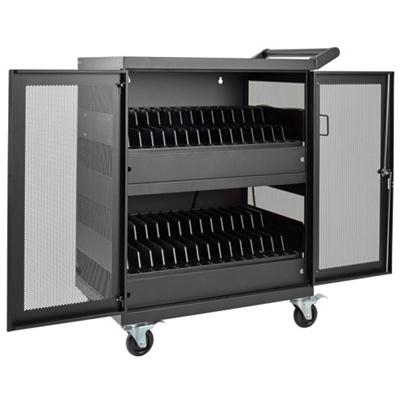32-Port AC Charging Sync Station Cart Chromebook Laptop Tablet. This is similar to the CS32AC but has wider dividers and has 2 doors.
