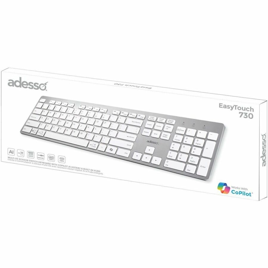 The Adesso AKB-730 delivers a smooth and responsive typing experience with its scissor switch technology that requires less key travel distance and less force to press keys making it more comfortable for prolonged typing