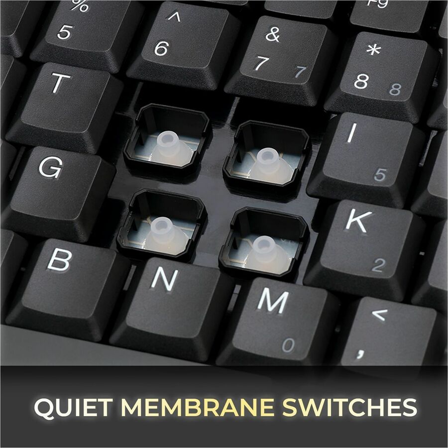 • Membrane keyboard for fast and quiet typing – The membrane key switch features more than a five million lifecycle, and is designed with a silicone rubber material, which can reduce noise when typing, offering a faster and quieter typing experience.