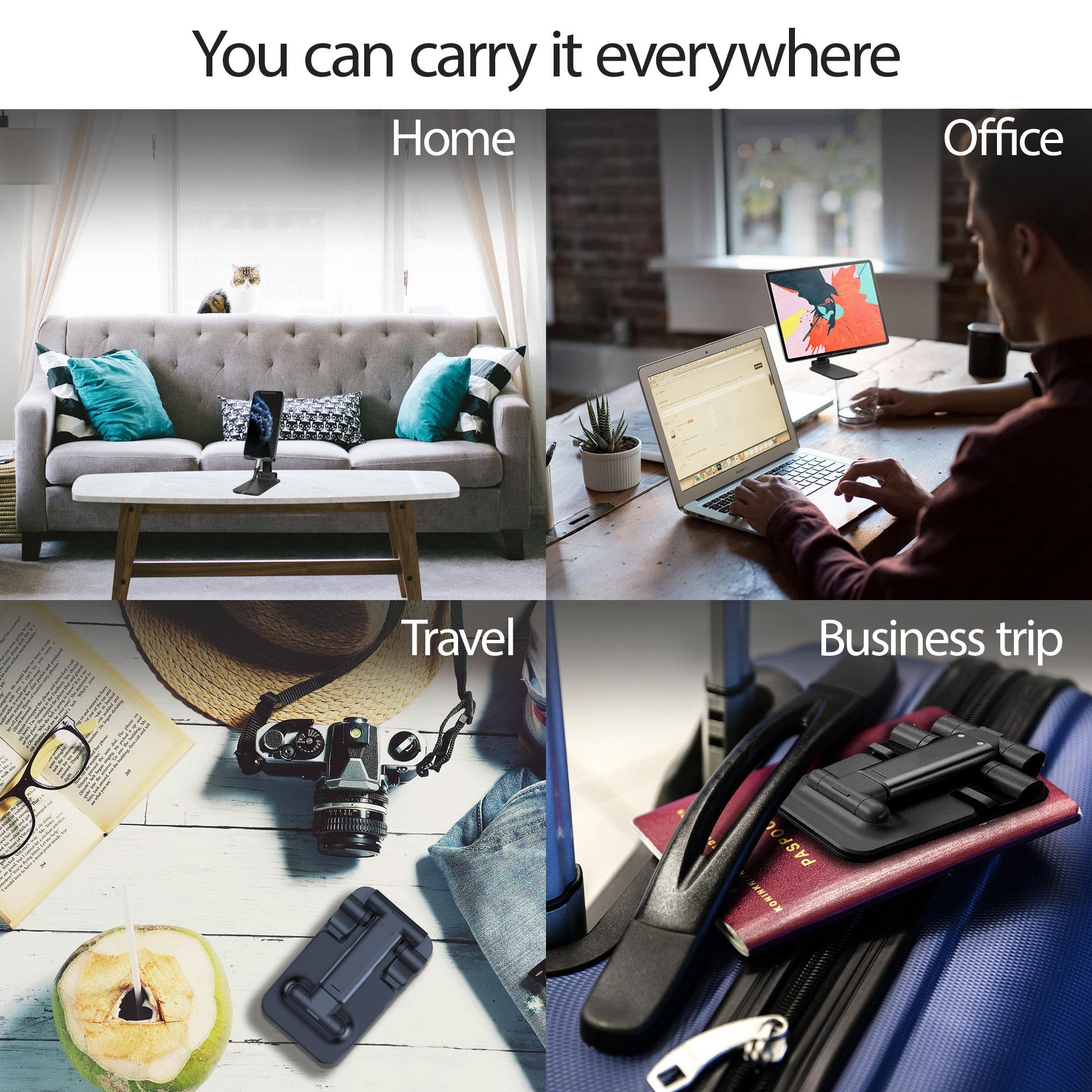 Holder is collapsible and can be fully folded into a compact size. You can carry it around with you wherever you are going in your pocket, handbag or backpack: home, office, travel, business trip.