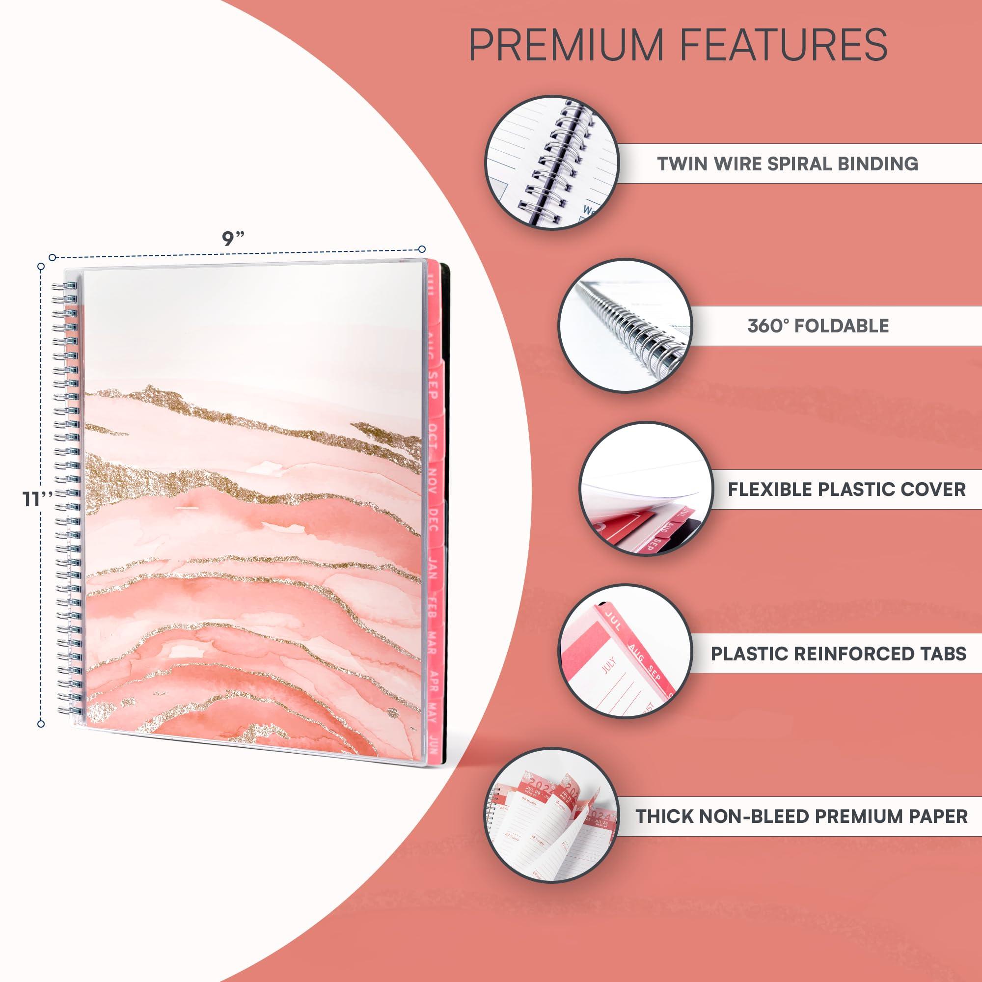 Aesthetic Planner Academic Year July 2024 June 2025 8.5 x11 with Weekly and Monthly Calendar pages Daily Planner for Office Teacher Student Work (Marble)