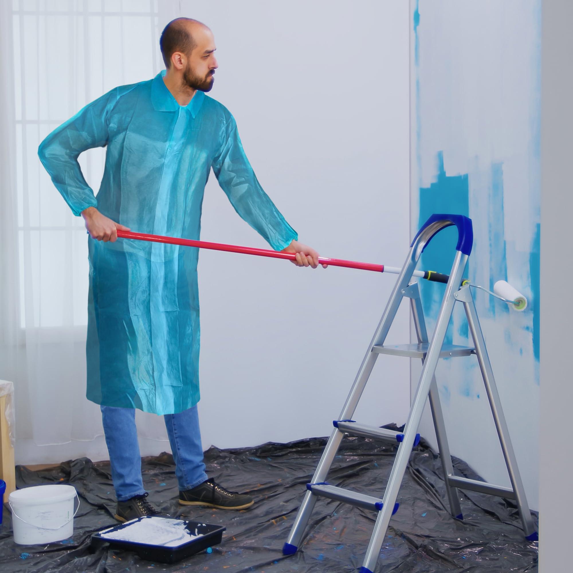 Ruggedly Reliable – Built to Last. Knee length lab coat stands up to the test. Waterproof, tear-resistant, and roomy, this painting lab coat ensures you remain covered, keeping attire pristine and skin untouched.