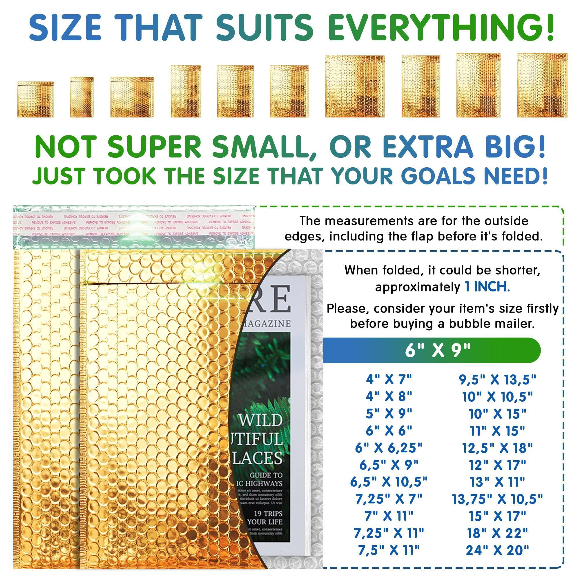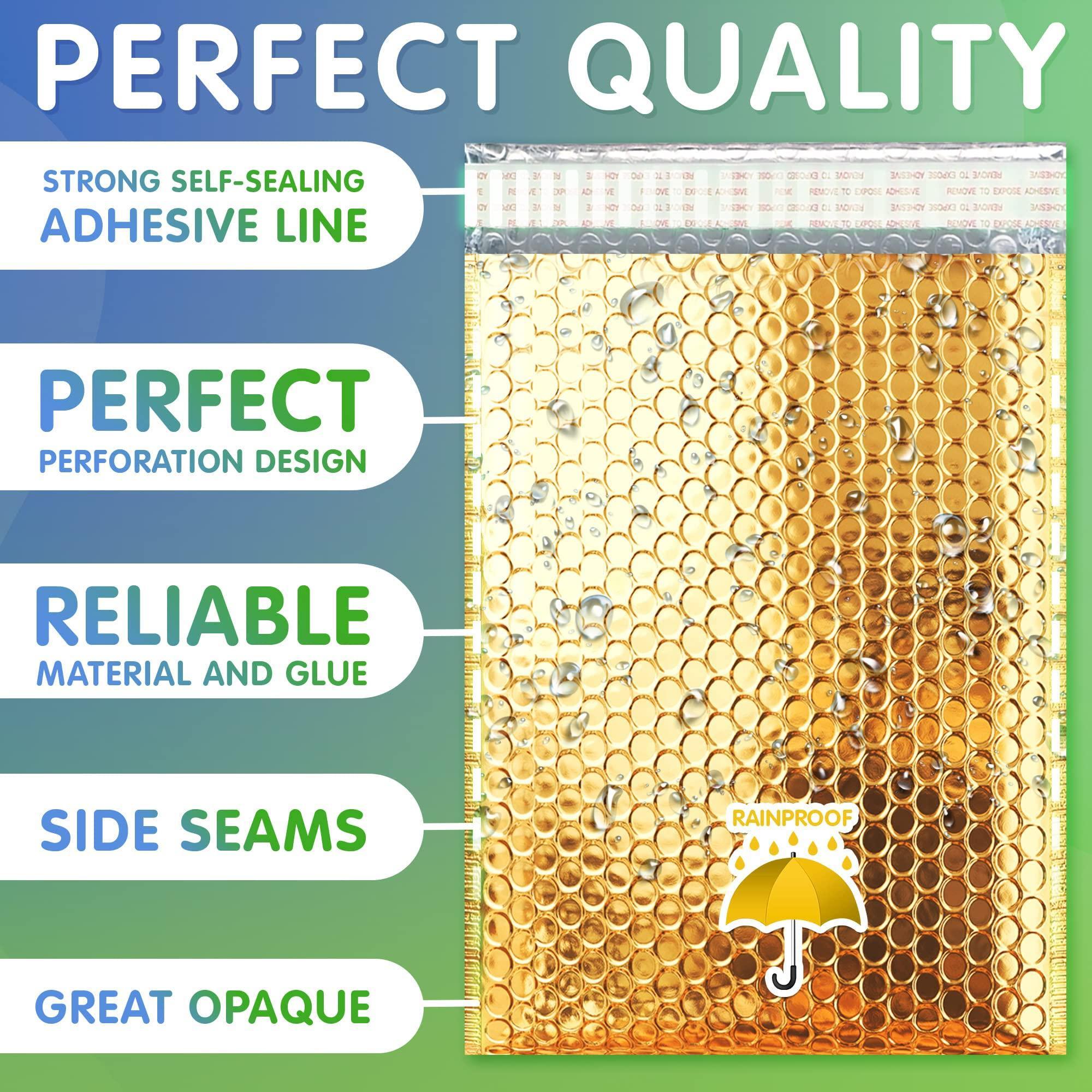 TOP QUALITY OF GOLD ENVELOPE: Our metallic bubble mailers as packaging for small business are made from metalized foil with a bubble lining. Durable, resistant to tears, and punctures mailing envelopes make them ideal for small business packaging supplies.
