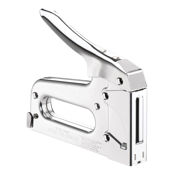 • All-chromed steel housing and hardened steel components;• Easy-squeeze mechanism ;• Jam-resistant mechanism;• Staple-viewing window shows when staples are low;• Fires T50(R) flat-wire staples ranging from 1/4 in. to 9/16 in. high;• Most 1/4 in.-thick items hold well with 3/8-in. staples ;• Ideal for general repair, professional uses, upholstery, insulation, and light trim;