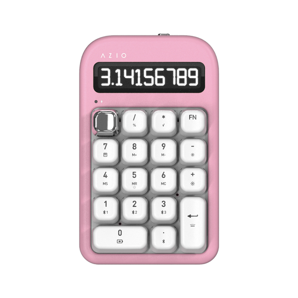 Azio IN408 IZO Number Pad/Standalone Calculator with Red Switches, Bluetooth and USB (Pink Blossom)