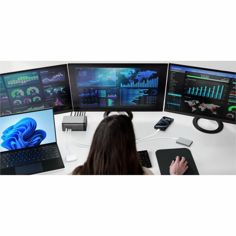 Belkin 11-in-1 Triple Display USB-C Docking Station – 10 Gbps – 1xUSB-A, 4xUSB-C, 2xHDMI, 1xEthernet, 1×3.5mm Audio, 1xSD, 1xMicro SD – w/ USB-C Cable – Grey – for Monitor – Charging Capability – 150 W – USB Type C – 3 Displays Supported – 4K @ 60Hz, 8K @ 30Hz, 4K @ 120Hz – 3840 x 2160, 7680 x 4320 – USB Type-C – Network (RJ-45) – Wired – Ethernet – Windows – 146W