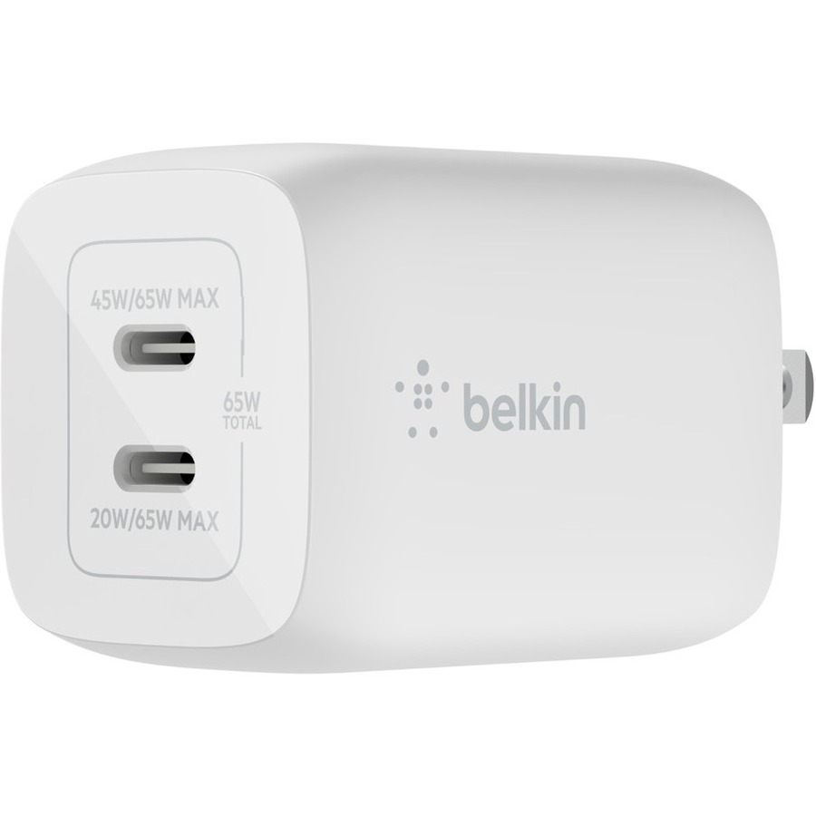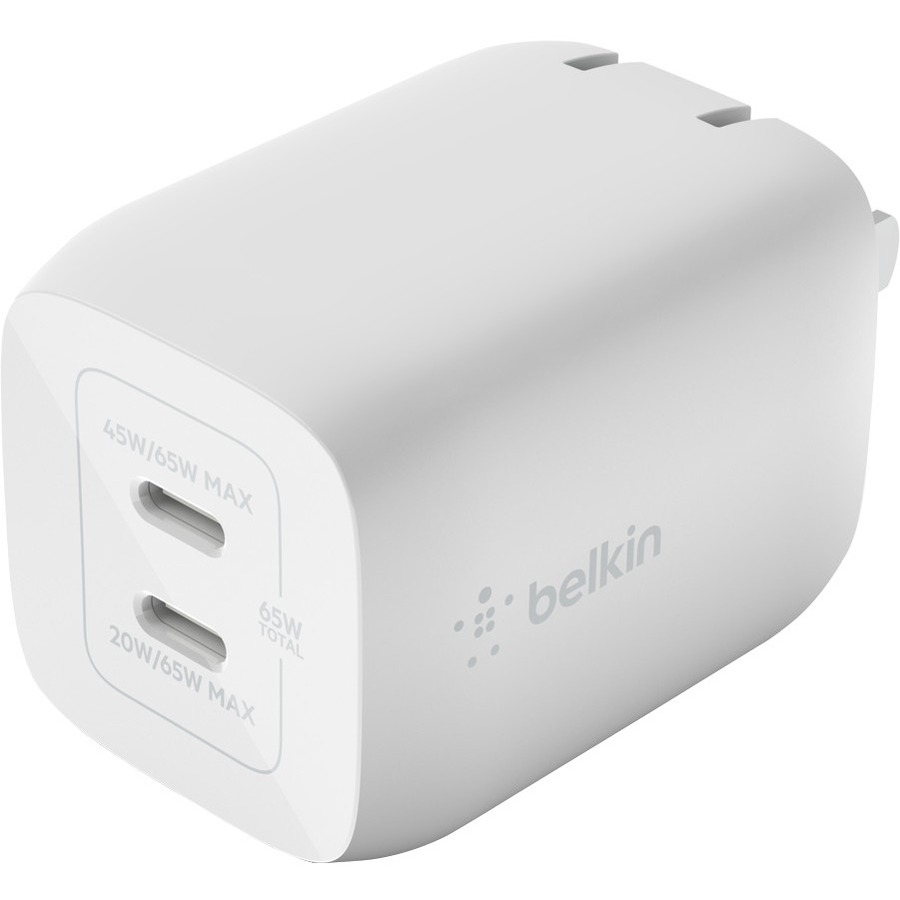 - When both USB-C ports are in use, fast charge 2 devices with up to 45W from the top port and up to 20W from the bottom port