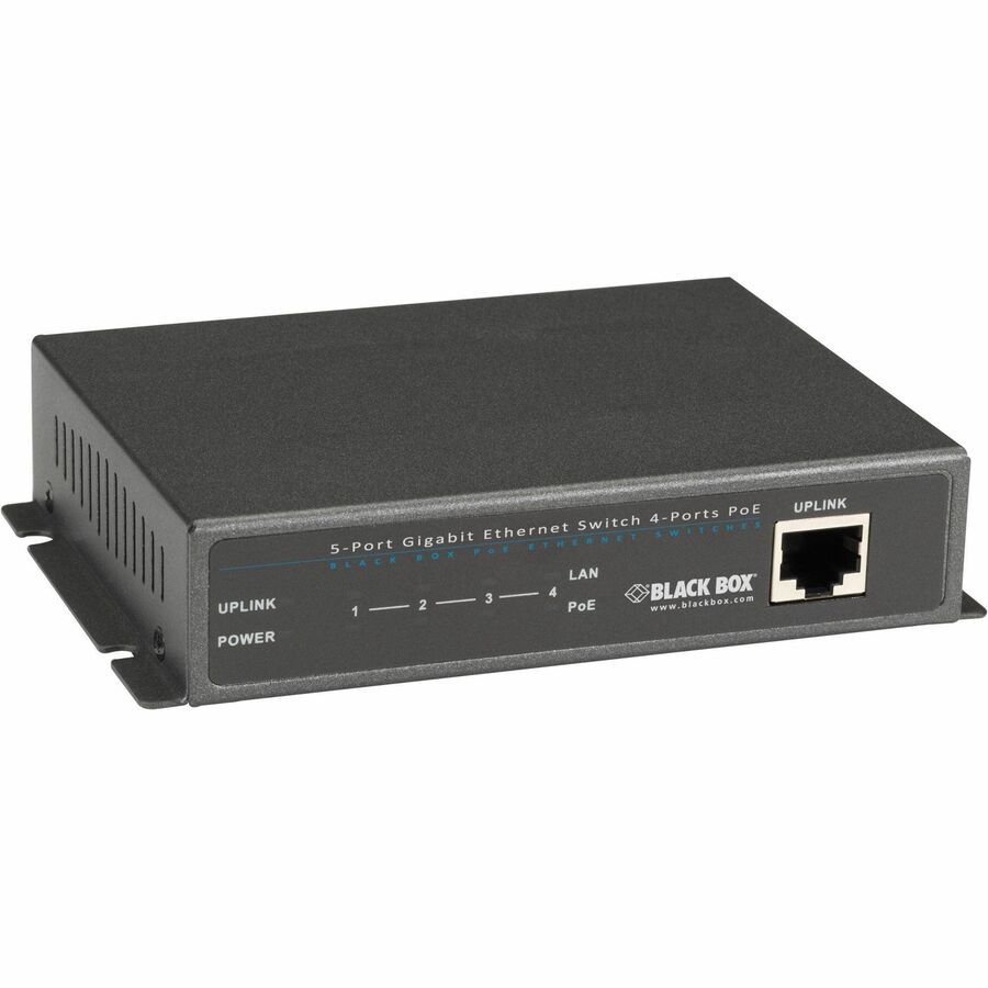 - Features four PoE ports and one uplink port