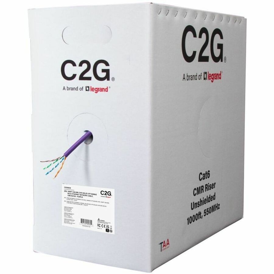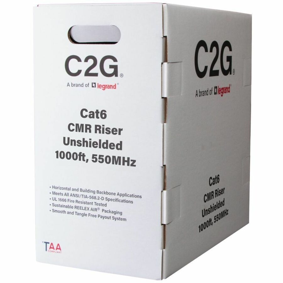 The C2G56039 TAA-Compliant Cat6 Bulk Cable is an excellent choice for customized horizontal network installations that demand high-speed and high-bandwidth performance. This cable is engineered to meet the ANSI/TIA-568.2-D (2018) standard, supporting a data frequency range up to 550 MHz, making it ideal for both commercial and residential networks where reliable and fast connectivity is essential. This bulk cable comes with a riser, CMR-rated jacket, ensuring compliance with safety standards for in-wall installations. Being TAA compliant, the C2G56039 is suitable for government and federal projects, meeting the necessary regulations for these environments. The cable is also packaged in an innovative, sustainable design that reduces plastic and cardboard waste by 40%. This slim packaging not only saves space but also offers a smooth cable-pulling experience, making installations quicker and more efficient, while contributing to a greener, more eco-friendly approach.
