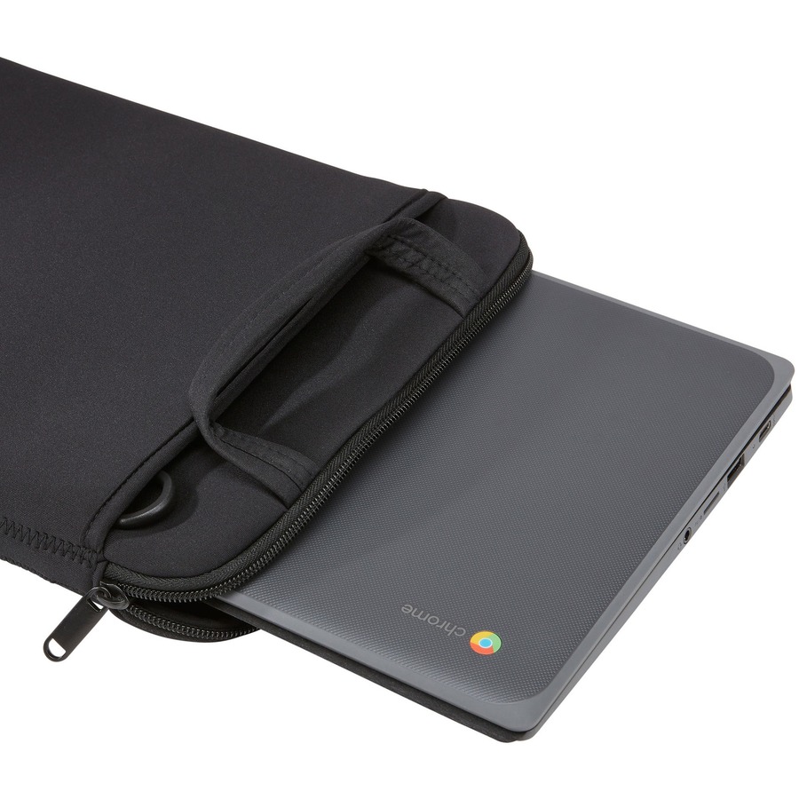 - Durable neoprene sleeve cushions and protects your laptop