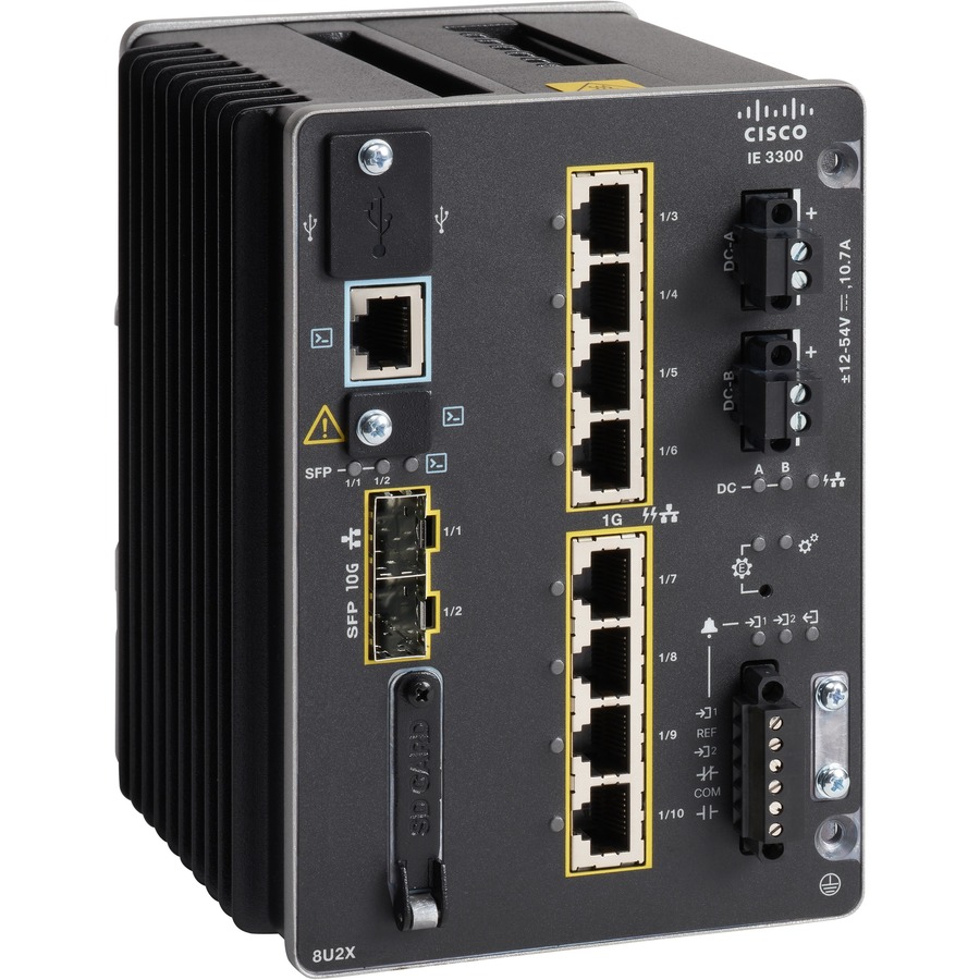 Cisco Catalyst IE3300 Rugged Series switches deliver high-speed up to 10 Gigabit Ethernet connectivity in a compact form factor, and are designed for a wide range of industrial applications where hardened products are required. The modular design of the Cisco Catalyst IE3300 Rugged Series offers the flexibility to expand to up to 26 ports of Gigabit Ethernet or up to 24 ports of Gigabit Ethernet and 2 ports of 10 Gigabit (10G) Ethernet with a range of expansion module options. The platform is built to withstand harsh environments in manufacturing, energy, transportation, mining, smart cities, and oil and gas. The IE3300 platform is also ideal for extended enterprise deployments in outdoor spaces, warehouses, and distribution centers.