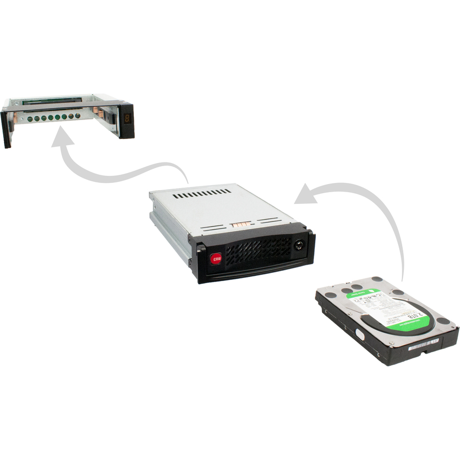 Soft start circuitry increases data integrity by eliminating in-rush current during drive spin-up. This external drive carrier is hot swappable, so there is no need to power down the computer to switch drives.