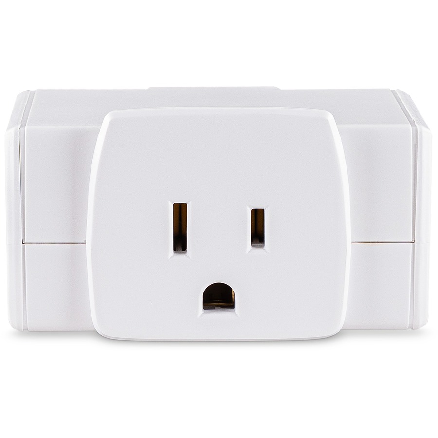 The GT3WT wall tap adapter from CyberPower effectively expands a single outlet into three outlets, facing three sides. This wall tap adapter has three standard spaced, grounded outlets, and one standard three prong grounded plug.