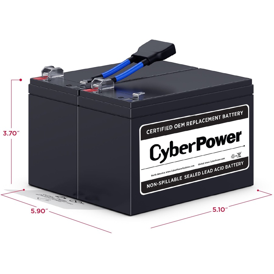 The RB1290X2B UPS Replacement Battery Cartridge restores life to CyberPower UPS systems that have weak or completely depleted internal batteries. The RB1290X2B contains two 12V/9Ah batteries, certified to meet or exceed original manufacturer specifications. This leak-proof, sealed lead-acid battery never requires replacement fluid. The batteries install easily into your CyberPower UPS system and are shipped with reusable packaging for delivering expired batteries to a suitable recycling center. The RB1290X2B comes with instructions, recycling information, and an eighteen-month warranty.