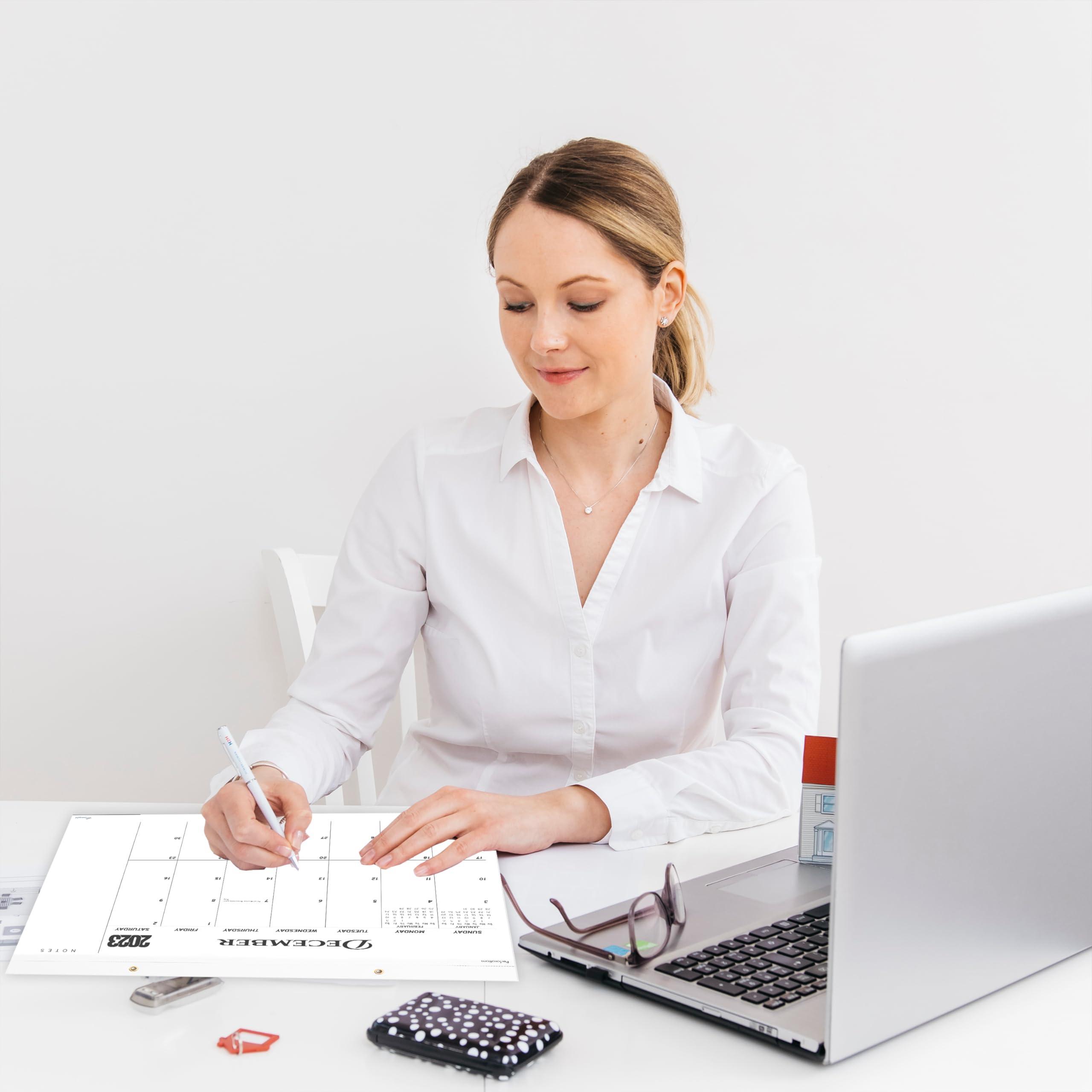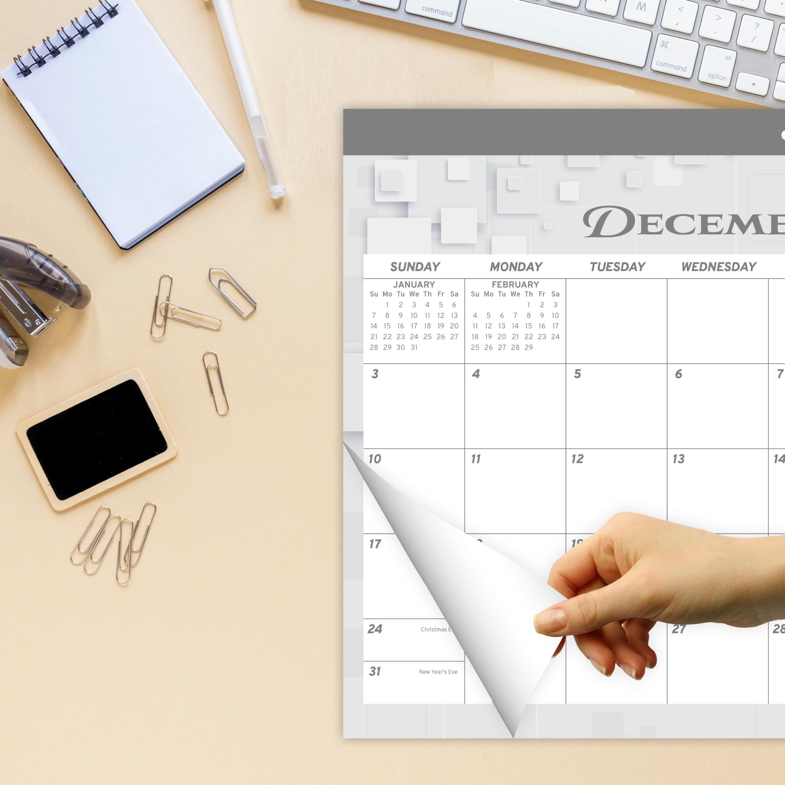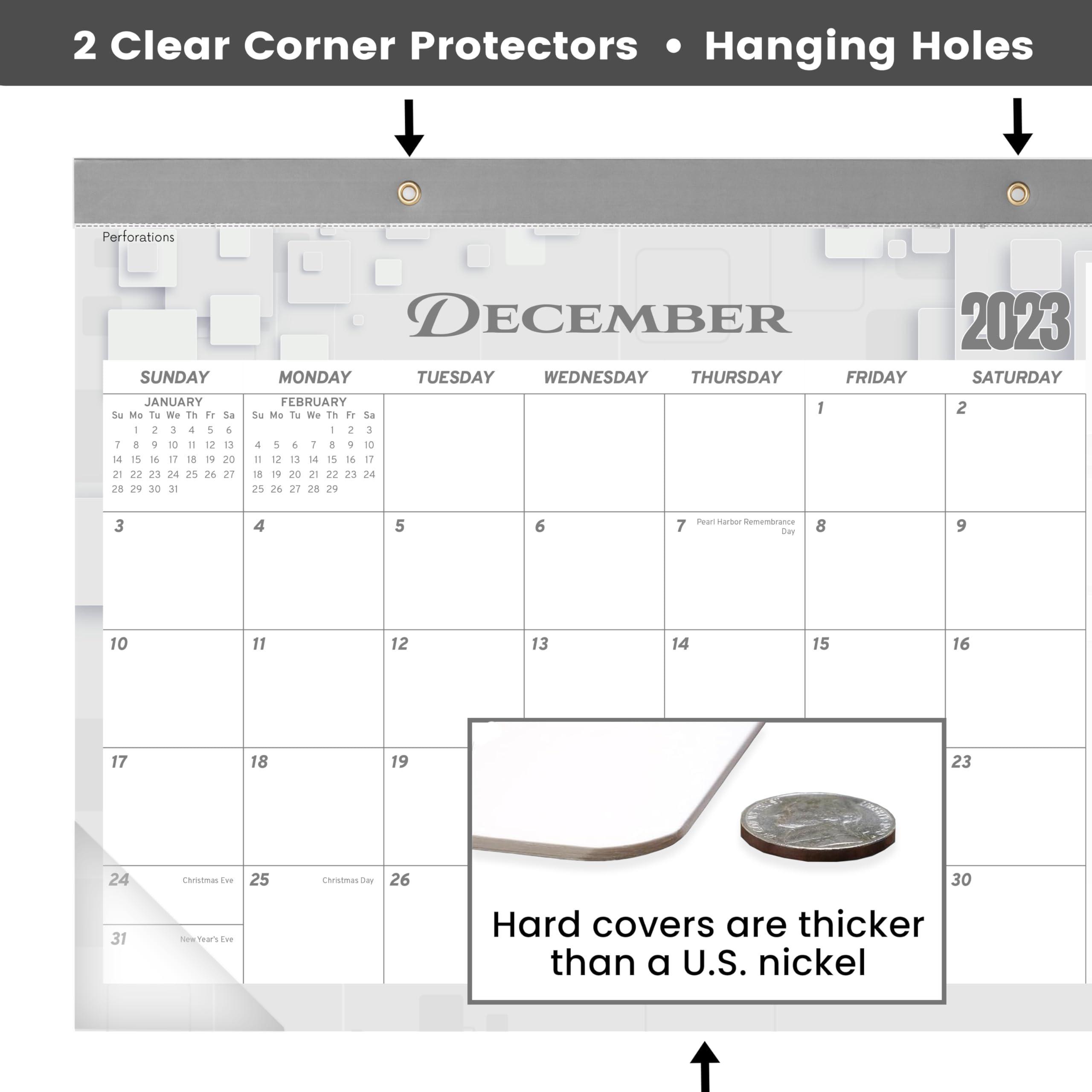 LARGE DESK CALENDAR 2023-2024 – 12 x 17 inches monthly desk calendar covers 18 months + holidays marked + white & gray boxed background each month, focusing on easy and efficient planning, scheduling, and tracking for a manageable and successful life