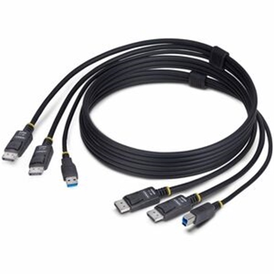 – KVM cable connects a computer to a Dual-Monitor Displayport KVM Switch that features USB 5Gbps – Simplifies setup by integrating the cables into a single bundle reducing the number of individual cables that need to be managed – Universally compatible and works with any operating system including Windows/macOS/Linux and all hardware platforms such as Intel/AMD/Apple – KVM Combo Cable is DP 1.2 compliant supporting up to 4K 60Hz; USB 3.0 Type-A to Type-B supports up to 5Gbps