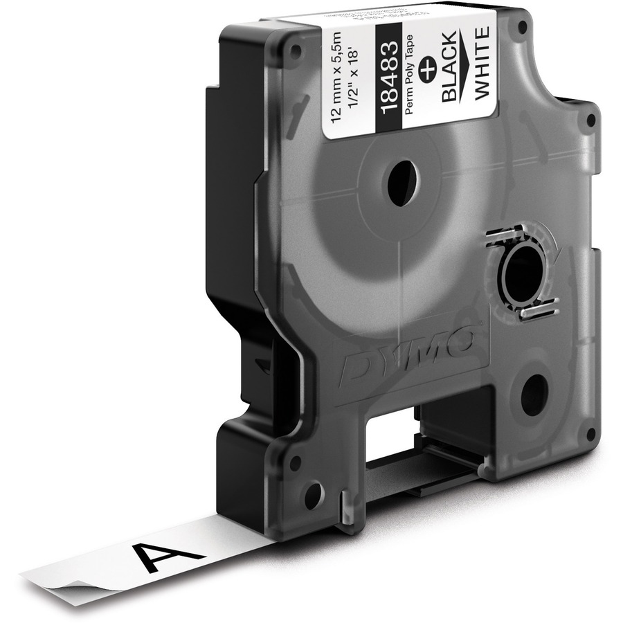 Permanent poly labels are resistant to oil, solvents and chemicals. Durable tape adheres to all surfaces even extremely rough ones like name-and-rating plates, patch panels, cabinets and racks. Labels are compatible with Dymo Rhino 6500, 6000, 5200, 5000, 3000, and 1000.