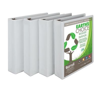 Samsill Earth’s Choice View Binder, Round Ring, White, 1.5″, 4 pk. Earth’s Choice biodegradable binders are made using an all natural organic additive. The polypropylene cover is formulated to biodegrade in microbial landfills within 5 years versus the hundreds of years it take normal plastic. All contents are 100% recyclable. Completely reusable with unlimited shelf-life. Customizable clear overlay on front, back and spine will not stick or lift copy. Acid-free, archival and environmentally-safe polypropylene. This binder is designed with removable ring metals. Two clear inside pockets for storing additional loose papers. Rings mounted on back lid so pages lay flat. Made to Degrade – Environmentally safe polypropylene cover is specially formulated to BIODEGRADE in microbial landfill in 1-5 years vs. the hundreds of years it takes normal plastic. Removable rings makes binders 100% recyclable. Chipboard is made from 100% recycled material. A portion of proceeds from each binder purchased is donated to American Forest to help plant a minimum of 7,500 trees annually. CALIFORNIA NOTICE: California law prohibits any form of biodegradable, degradable or decomposable labeling claims on plastic packaging and plastic products. As required by this law, Samsill does not make any such claims for its packaging and products offered for sale in California; nor does Samsill intend to imply to any customer in California that its products will breakdown in a landfill. White. This item contains 4 binders. Individual binders are not labeled for resale.