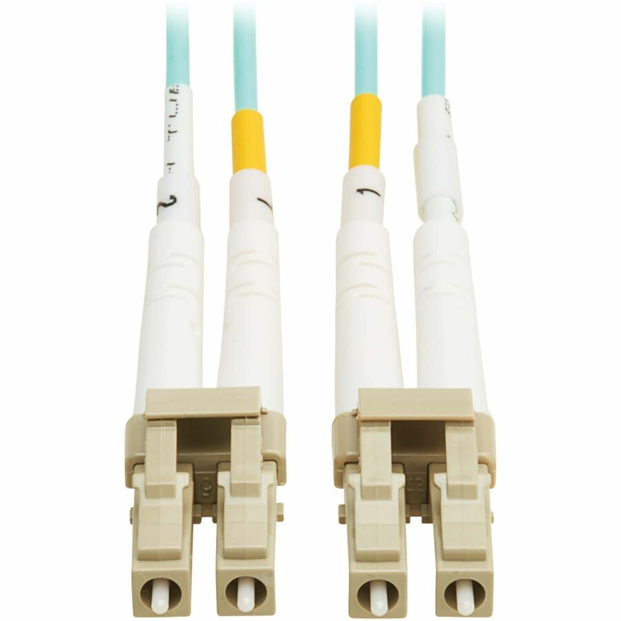 Premium materials ensure this multimode fiber cable reliably carries data and voice signals. The N820-05M-OM4TAA has duplex male LC connectors on each end and features a low-smoke zero-halogen (LSZH) jacket that limits the amount of toxic smoke emitted in case of combustion, making it suitable for poorly ventilated areas. The aqua color of the jacket identifies the cable as OM4 rated. It meets current IEEE 802.3ae and TIA LOMMF standards, and is compatible with existing OM3- and OM4-rated 50/125 fiber solutions..