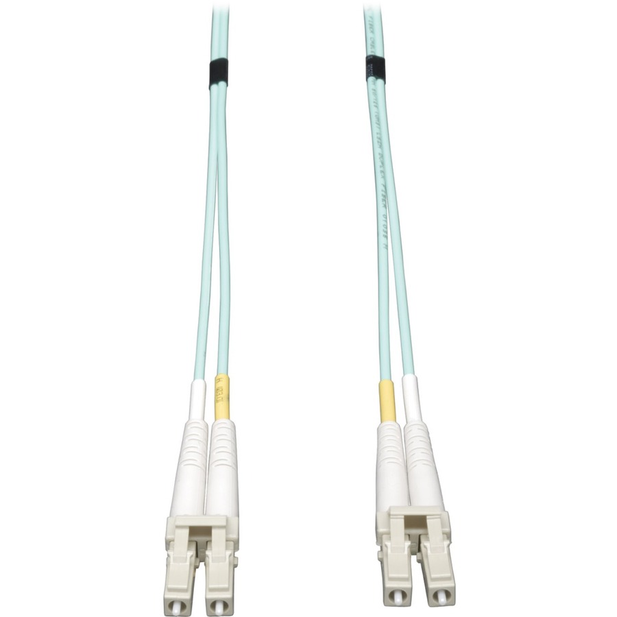 Tripp Lite’s N820-20N is an OM3 Laser-Optimized Multimode Fiber (LOMMF) “Aqua” cable, for use with 10Gb Ethernet applications. 50/125um, LC/LC Fiber Optic cables provide nearly three times the bandwidth over conventional 62.5um multimode fiber, with performance rivaling that of Single mode cable, at a much reduced cost. LOMMF cable allows 10Gb serial transmission over extended distances in the 850nm wavelength window, where low-cost Vertical Cavity Surface Emitting Lasers (VCSELs) enable a cost-effective, high-bandwidth solution. LOMMF is ideally suited for LAN’s, SAN’s, and high-speed parallel interconnects for head-ends, central offices, and data centers.
