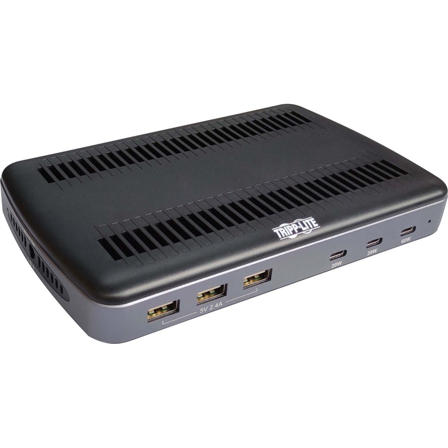 Three USB-A ports provide a maximum of 5V 2.4A (12W) of power, enough for fast-charging most smartphones and tablets. For devices that are more powerful, one USB-C port provides up to 60W PD charging for battery-intensive devices like the MacBook Pro or Chromebook Pixel. Two more USB-C ports support PD charging up to 20W.