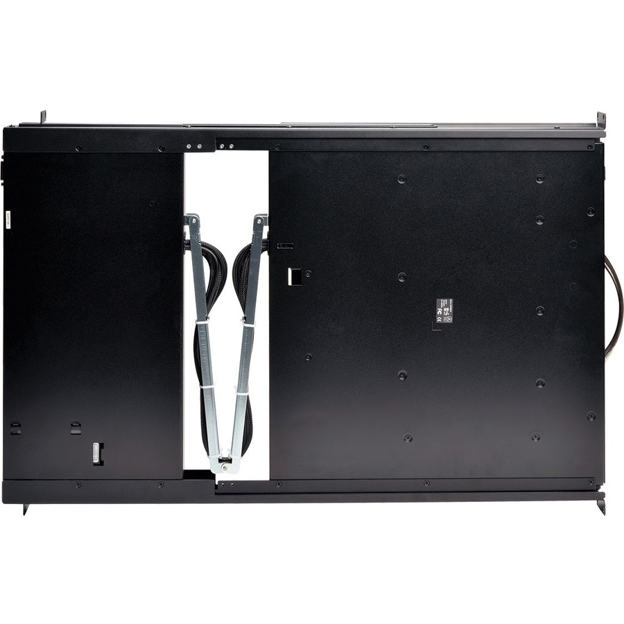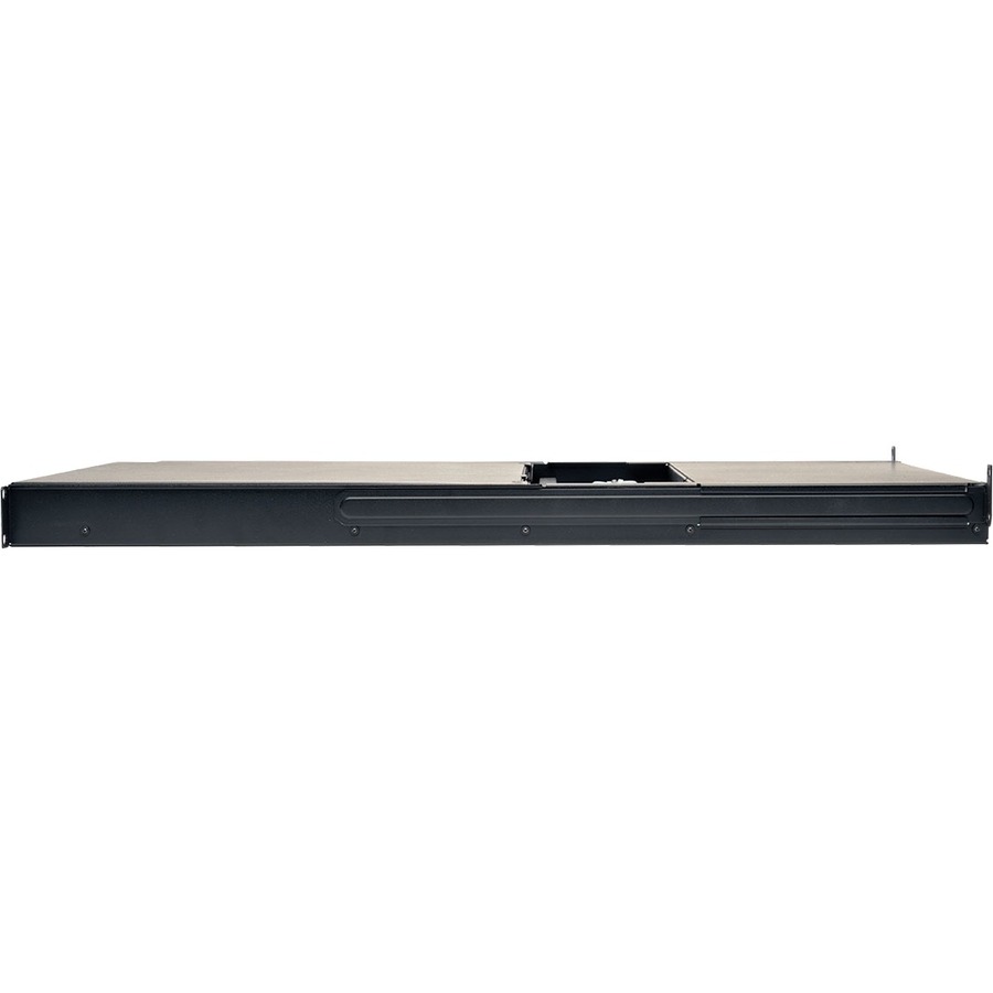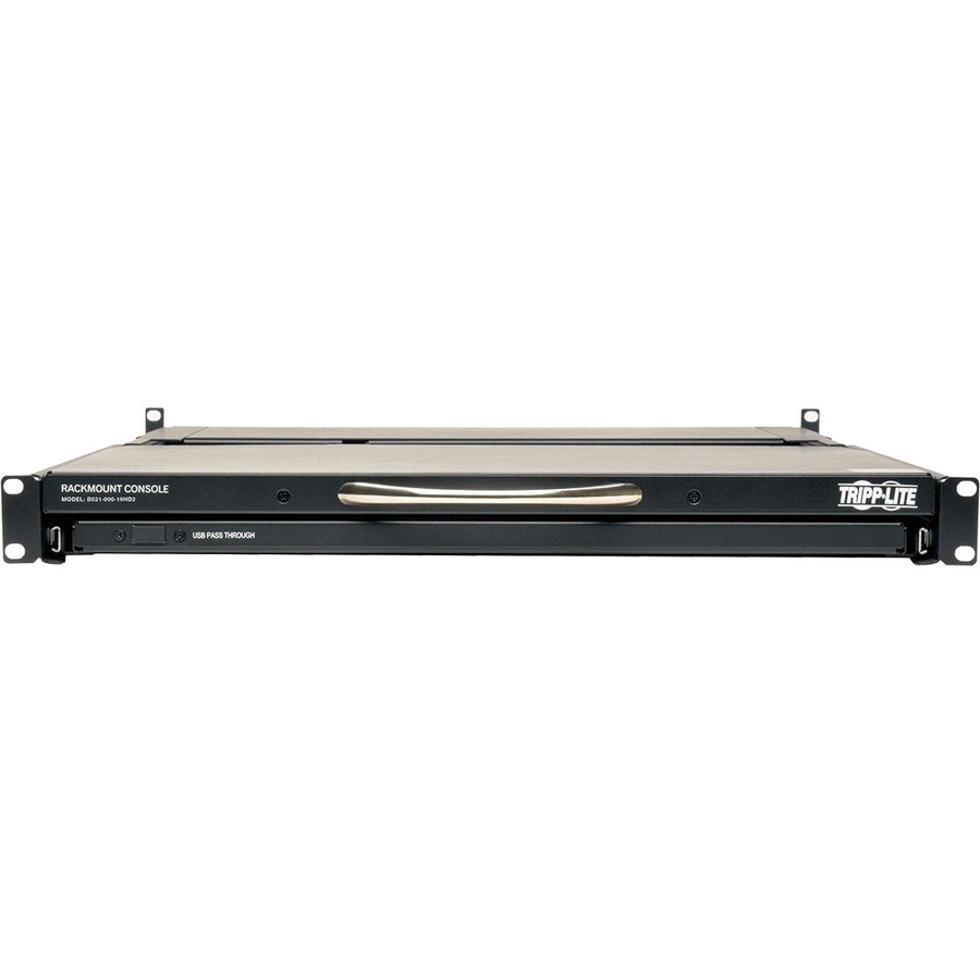 The B021-000-19-HD2 mounts into 1U of space in an EIA-standard 19-inch rack using the included mounting brackets and user-supplied screws. Simply pull out the steel drawer and flip up the screen when needed, then slide it back into the rack in automatic sleep mode when you’re finished. This keeps the keyboard and screen from blocking access to rack equipment when the console is not in use.