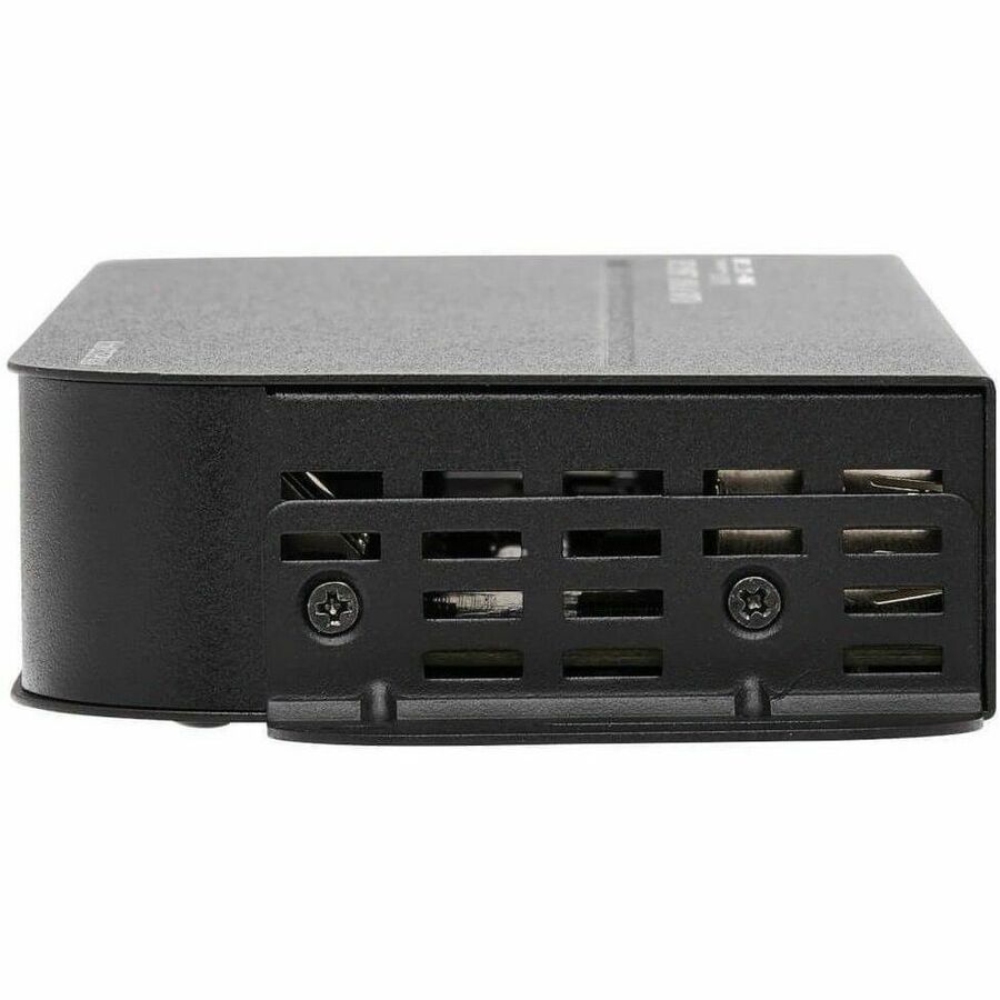 The heavy-duty metal housing comes with mounting brackets for permanent installation on a wall or beneath a desk with user-supplied hardware. The included DC power supply connects to any standard AC power source.