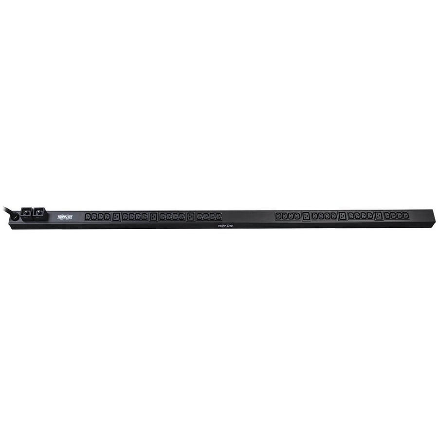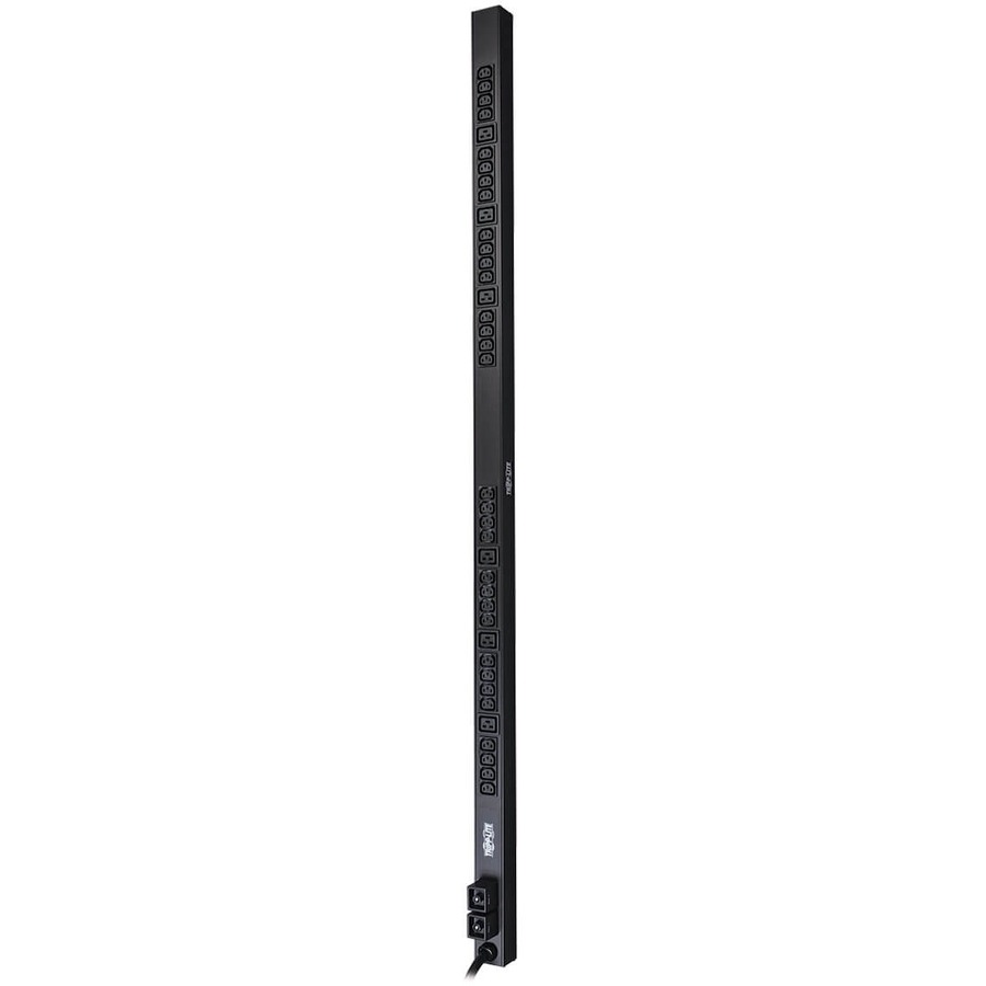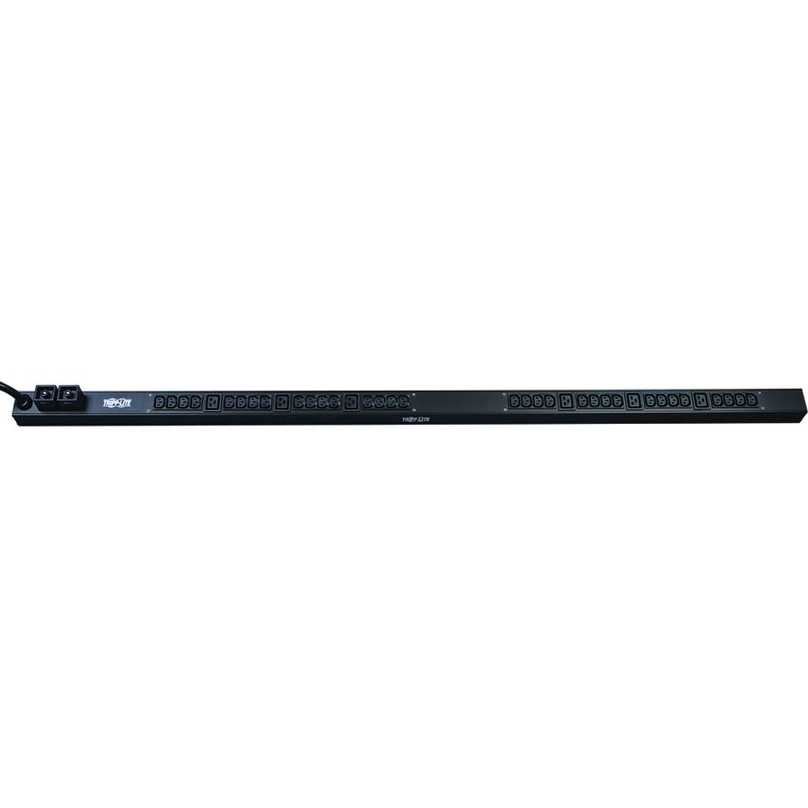 Tripp Lite Basic Power Distribution Units give IT Managers the ability to power multiple servers and vital networking hardware from a single input power source. Switch-free unfiltered electrical pass-through reliably distributes UPS or generator power to critical equipment in rack enclosures, network closets and more. Tooless mounting enables simple installation in button-mount compatible racks. Included mounting brackets support vertical installation in standard 2 and 4 post racks or other surfaces, such as under-counter or wallmount configurations. Plug retention brackets keep vital equipment plugged in and continuously powered.PDUV30HV 63.75 in. vertical 0U rack PDU supports 30A maximum capacity at 208/240V (agency derated to 24A). Includes 10 ft. attached line cord with L6-30P input plug. 32 C13 and 6 C19 outlets support up to 38 directly connected pieces of networking equipment. Outlets are arranged in two separately breakered 15A load banks.