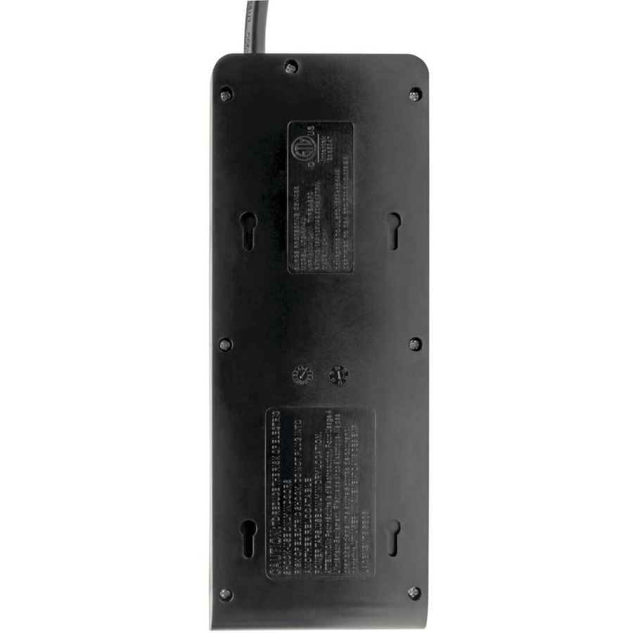 This surge protector with 6-foot cord and NEMA 5-15P plug allows you flexibility in placing the unit away from a wall outlet. Keyhole slots incorporated into the bottom panel provide convenient wall or desk mounting options for the black plastic housing.