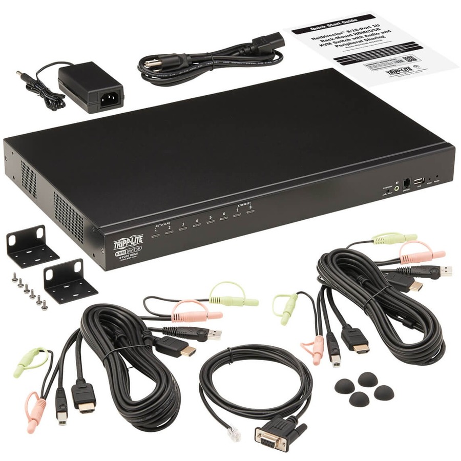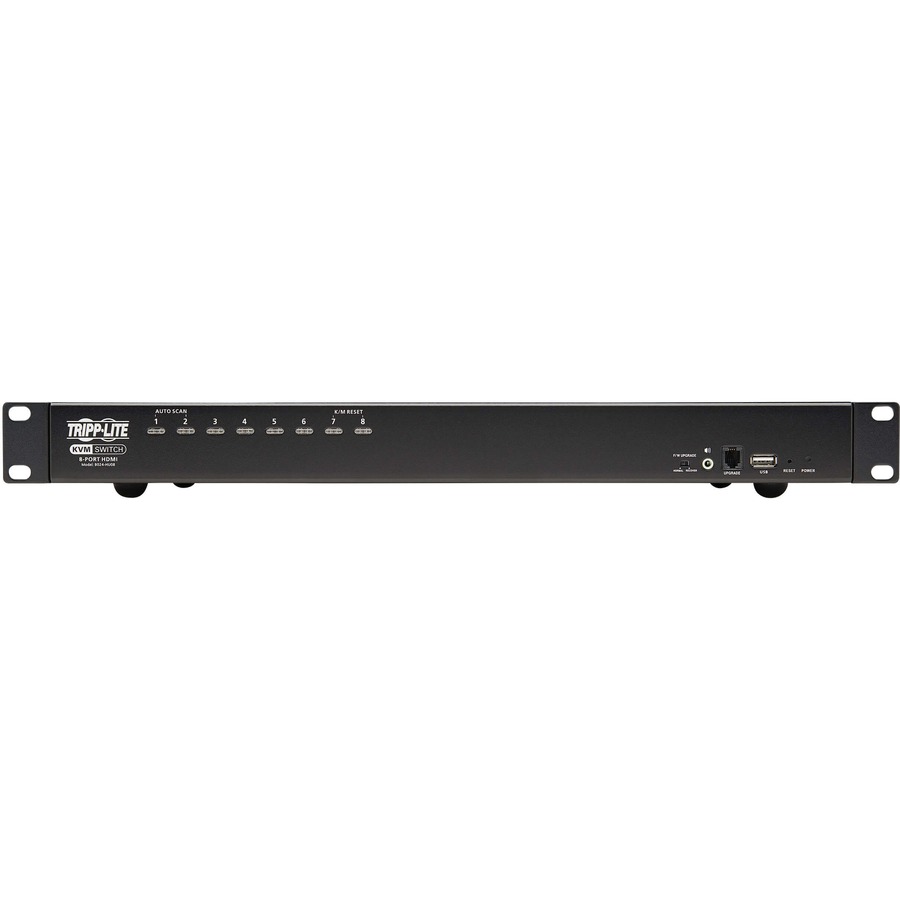 This rack-mount KVM switch lets you access, control, boot and reboot up to eight computers or other devices with HDMI ports at the same time. In addition to desktop and notebook computers, the switch also connects up to eight media centers, gaming systems, Blu-ray and DVD players, cable and satellite boxes and DVRs, and other HDMI-enabled devices. All eight computers share one HDMI monitor, USB keyboard and USB mouse, which saves space on your desk or workspace.