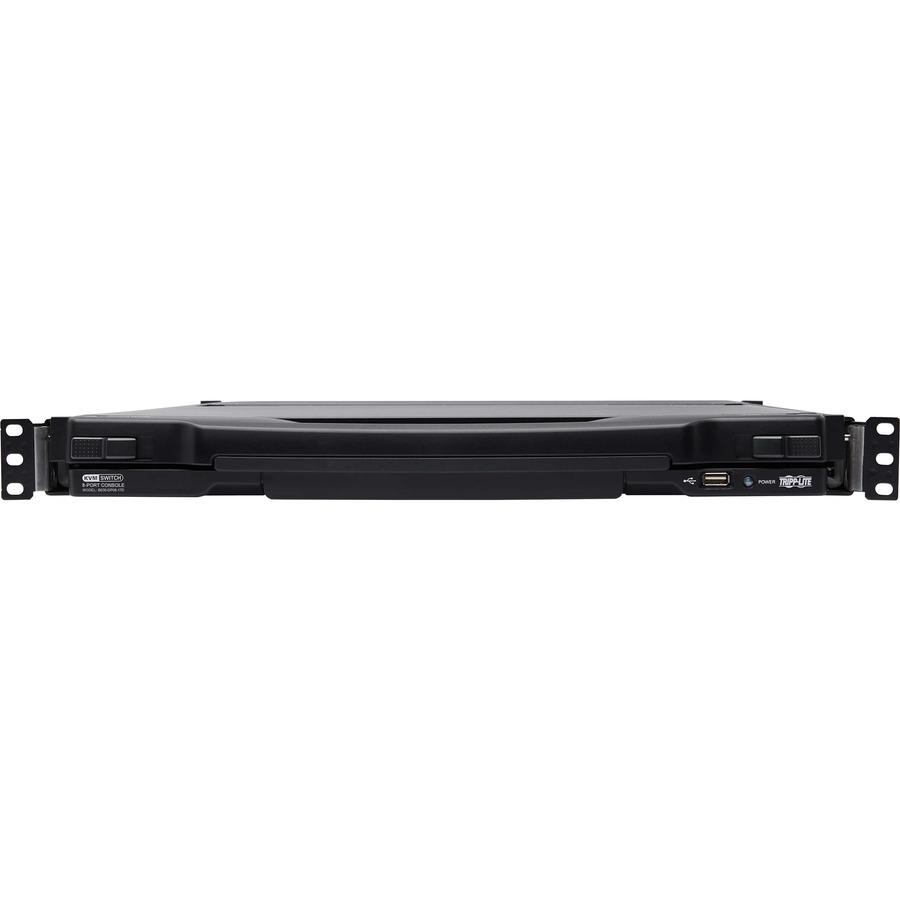The dual-rail B030-DP08-17D supports high-definition video resolutions up to 1920 x 1080 (1080p) at 60 Hz. The wide display flips up to provide access to connected computers, making multitasking easier and more convenient, and folds down to prevent the console from blocking adjacent rack equipment when not in use. The LCD and the keyboard/touchpad are on separate rails, so the LCD can remain open while the keyboard/touchpad is stored out of the way, keeping the rack aisle clear.
