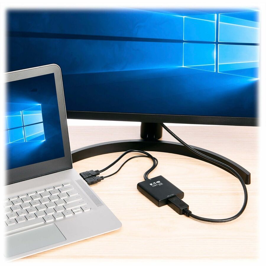 The HDMI-to-DisplayPort converter works right out of the box with no software required. If extra power is needed, connect its built-in USB plug to your laptop’s USB-A port. This cable is small enough to fit into your briefcase, backpack or laptop bag so you can take it with you wherever you go.