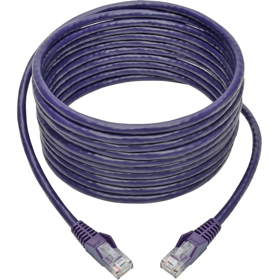 The N201-015-PU Cat6 Gigabit Snagless Molded UTP Patch Cable (M/M) is recommended for distributing data, voice and video through computers, network adapters, routers, servers, modems, hubs and switches in high-density data centers. Designed for fast transmission and excellent signal quality, this 15-foot purple cable ensures peak performance throughout your local area network (LAN). It reduces impedance and structural return loss compared to standard 100 MHz wire.