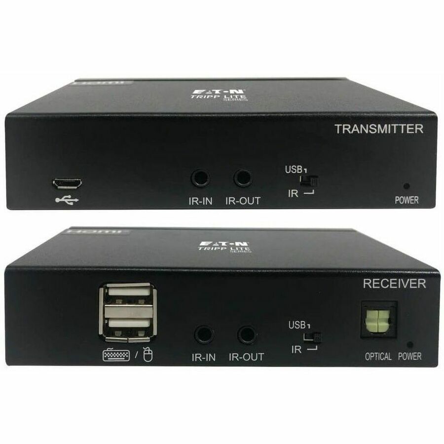 The DIP switches on both the transmitter and receiver can be adjusted to let you choose from the USB 1.1 or bi-directional IR functions. Choose to either control the source device via keyboard and mouse or IR remote control from the display end of the installation. Only one function can be extended at a time.