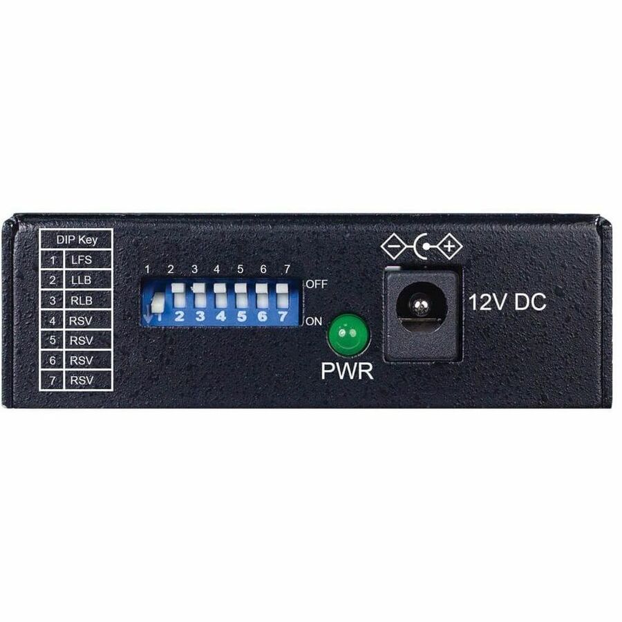 Determine the health of your network connection via the Link Fault Signaling (LFS) and Loop Back functions. The LFS LED indicates when a copper or fiber cable has been severed or another cause of disruption in service has occurred. The Local Loop Back (LLB) and Remote Loop Back (RLB) functions ensure copper and fiber cables have been correctly installed. Use the DIP switches to control each function or turn them on or off.