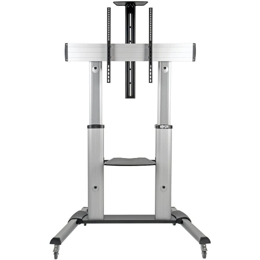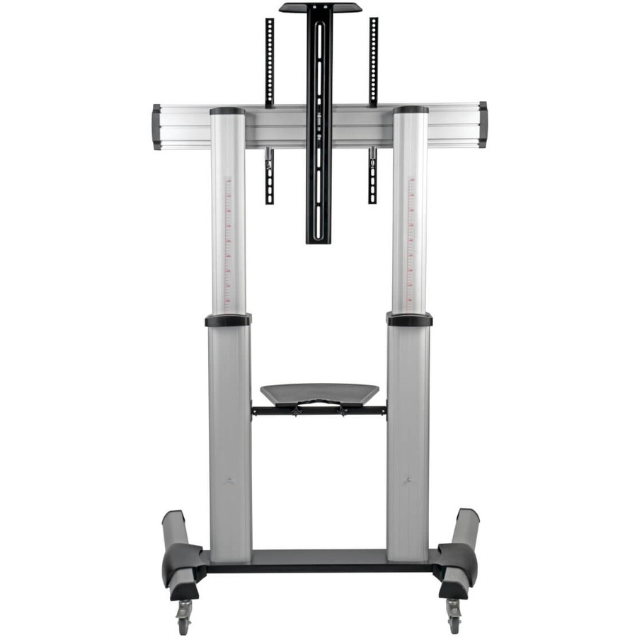The DMCS60100XX combines a height-adjustable TV stand with the convenience of a rolling cart. Mount a flat or curved panel television, monitor or interactive whiteboard on this rolling TV cart and bring it to your audience in a classroom, lecture hall, office, conference room or other location where audio/video resources are shared. The DMCS60100XX accommodates most flat-panel displays from 60 to 100 inches, including Promethean whiteboards. It has an aluminum frame and supports up to 220 lb.