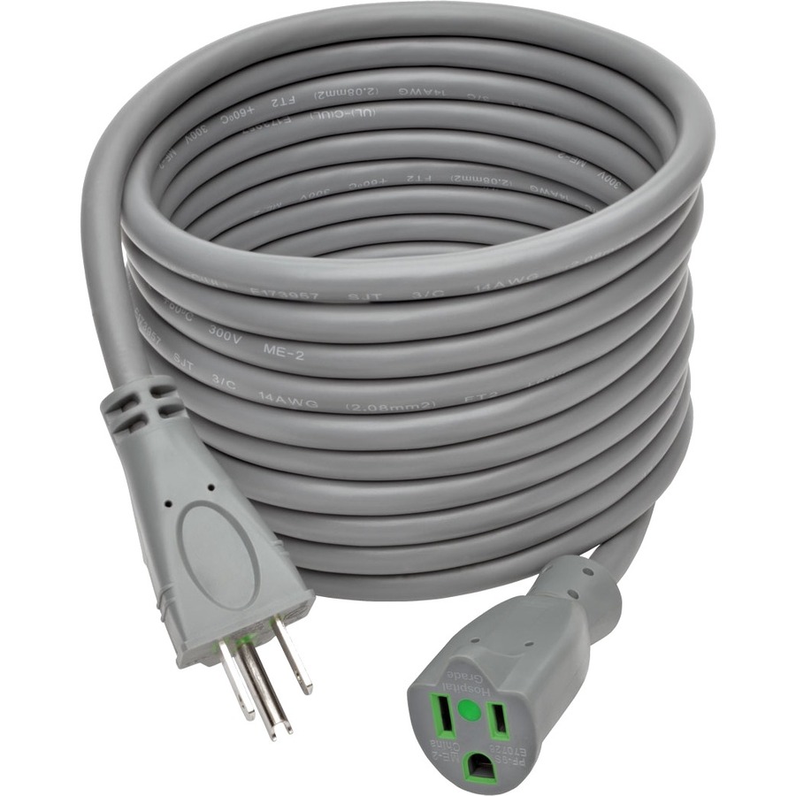 The P024-015-GY-HG Hospital-Grade Power Extension Cord features a NEMA 5-15P HG plug on one end and a NEMA 5-15R HG receptacle on the other, allowing you to extend the length of your existing hospital-grade power cord by 15 feet. This cord is tested to ANSI/UL 62 and 817, as well as CAN/CSA C22.2 no. 21 and 42 standards, ensuring it’s a safe, reliable power solution for hospital environments. This 15-foot 125V/15A cord features 14 AWG wire, a flexible SJT jacket and fully molded ends for optimum performance.