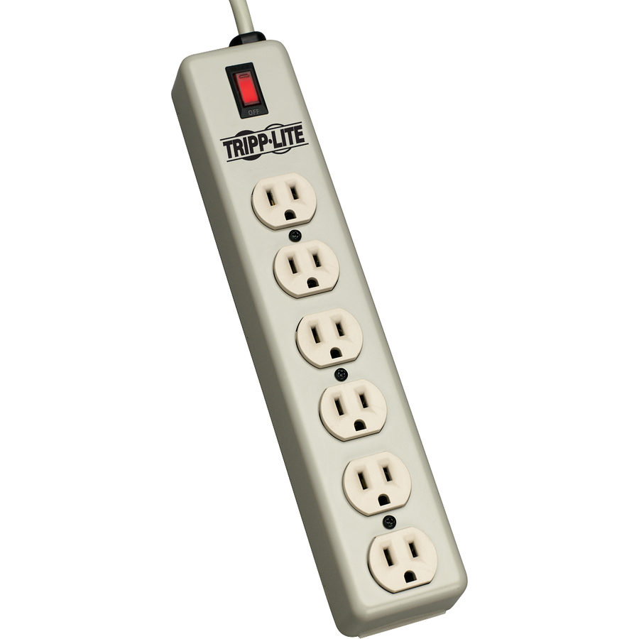 Tripp Lite’s 6SPDX-15 Power Strip offers a convenient method of power distribution in workbench, wallmount or floor mount applications. Includes 6 NEMA 5-15R output receptacles with 1.505-in. center-to-center spacing, 15-foot AC line cord and keyhole mounting tabs for installation in a wide variety of applications. Corded, multi-outlet strip reduces cabling clutter and enables the connection of multiple electrical devices to a single AC wall socket. Unfiltered electrical pass-through makes the 6SPDX-15 ideal for distributing alternate waveform UPS or generator power. Features rugged metal housing, lighted power switch with integrated 15A resettable circuit breaker and attractive beige color scheme.