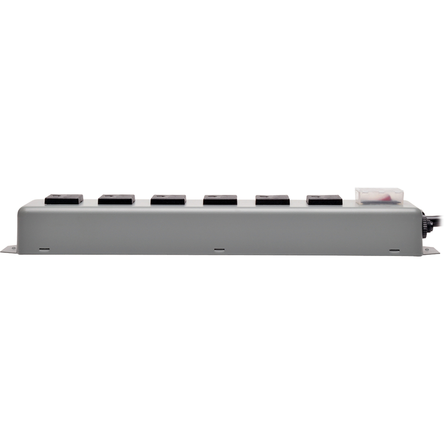 The Waber-by-Tripp Lite 6SP Power Strip offers a convenient method of power distribution in workbench, wallmount or floor mount applications. Includes 6 NEMA 5-15R output receptacles with 1.625 inch center-to-center spacing, 6-foot AC line cord and keyhole mounting tabs for installation in a wide variety of applications. Corded, multi-outlet strip reduces cable clutter and enables the connection of multiple electrical devices to a single AC wall socket. Unfiltered electrical pass-through makes 6SP ideal for distributing alternate waveform UPS or generator power. Features rugged all-metal housing, lighted power switch, 15A resettable circuit breaker and attractive blue/gray color scheme. PLUG/OUTLETS – Input: NEMA 5-15P/Output: 6 NEMA 5-15R ELECTRICAL – 120V AC, 50/60Hz, 15A (Requires standard NEMA 5-15R wall receptacle) FORMAT – Corded power distribution strip