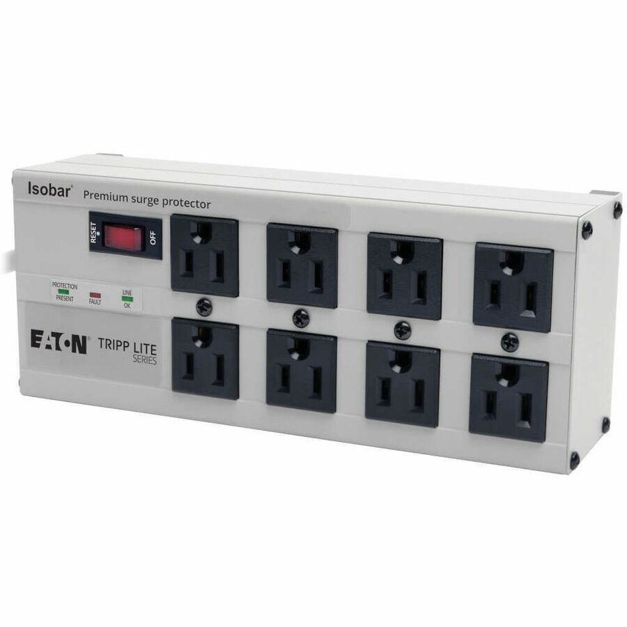 Eight-outlet Premium Surge Suppressor. Isolated filter banks eliminate interference between connected equipment often eliminating computer lock-ups, data errors, audio static and video interference. Four filter banks. Cascade circuitry provides increasing levels of noise protection with each successive filter bank, allowing users to select greater protection for more sensitive equipment. Indestructible all-metal housings won’t burn, melt or crack. Three diagnostic LEDs. ,50,000 Ultimate Lifetime Insurance.