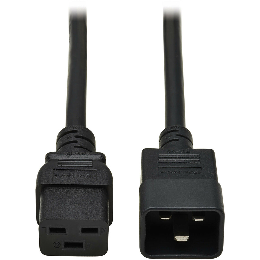 This heavy-duty extension cord features 12 AWG wire suitable for high power connections, making it a reliable solution for large server applications that require a higher-rated, heavier-gauge cable. This cord can be used to connect a server, router, network switch or blade server enclosure to a UPS system or PDU. It can also replace or upgrade the standard power cord provided by the device’s manufacturer. The 15-foot (4.6-meter) length allows you great flexibility in placing equipment with respect to the power outlet.