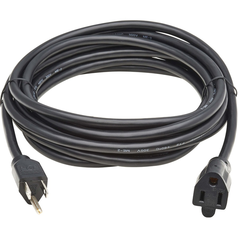 This power extension cable is designed for small data center or office workstation applications that do not require a heavy-gauge connection. With a NEMA 5-15P plug on one end and a NEMA 5-15R receptable on the other, this UL listed (UL 817) cord can be used to power a printer or monitor, attach a rack server to a PDU or extend an existing connection up to 15 feet (4.6 meters). The 15-foot length allows you more flexibility in placing equipment with respect to the power outlet.