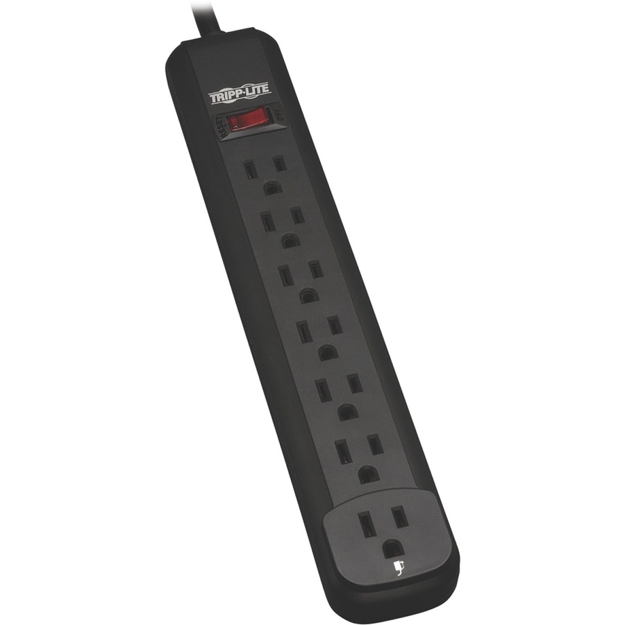 Your components plug into seven NEMA 5-15R outlets, including one designed to accept bulky transformers without blocking adjacent outlets. Integrated 15-amp circuit breaker protects all outlets against dangerous overloads. Lighted on/off switch provides one-touch control over connected equipment. Keyhole slots incorporated into the bottom panel provide convenient wall or desk mounting options for the black plastic housing.