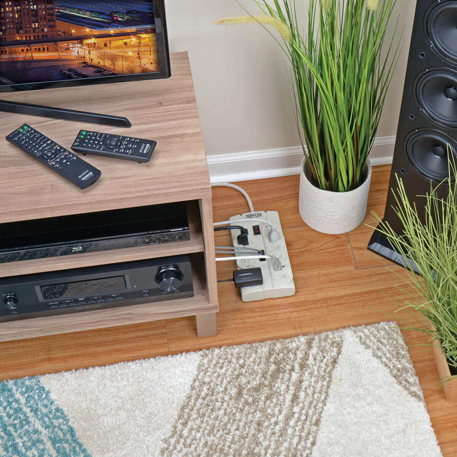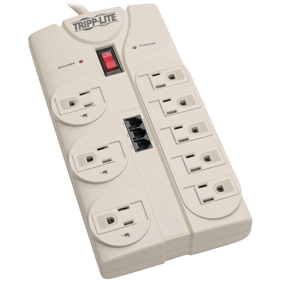 Tripp Lite’s TLP808TEL surge suppressor has 8 outlets, an 8-ft. cord with a space-saving right-angle plug, and diagnostic LEDs. The unit has a surge suppression rating of 2160 joules to handle the strongest surges. Built-in RJ11 jacks prevent surges from damaging your modem/fax/phone equipment. ,150,000 Ultimate Lifetime Insurance (USA, Puerto Rico & Canada only)