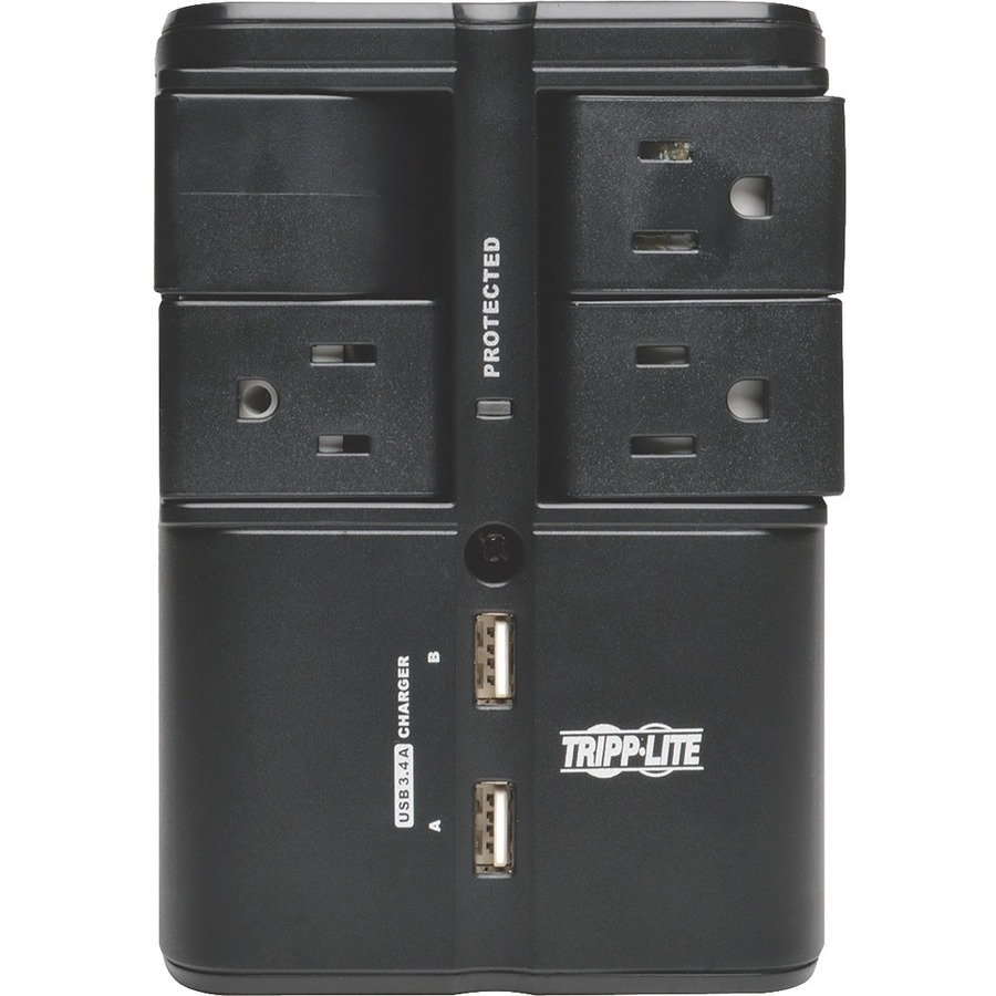 The SK40RUSBB surge suppressor offers reliable surge and line noise protection. Premium features include a compact, direct plug-in design and 4 rotatable outlets. The unique rotating design provides convenience and flexibility. Each outlet rotates independently to provide the perfect position to connect your equipment. The SK40RUSBB also includes 2 USB ports with 3.4 amps of total power that offers fast charging for smartphones, tablets, MP3 players and other portable devices. 1080 joules of surge protection to handle the strongest surge. Diagnostic LED alerts you to potential wiring or protection faults before connected equipment is damaged. ,25,000 Ultimate Lifetime Insurance (USA & Canada only).