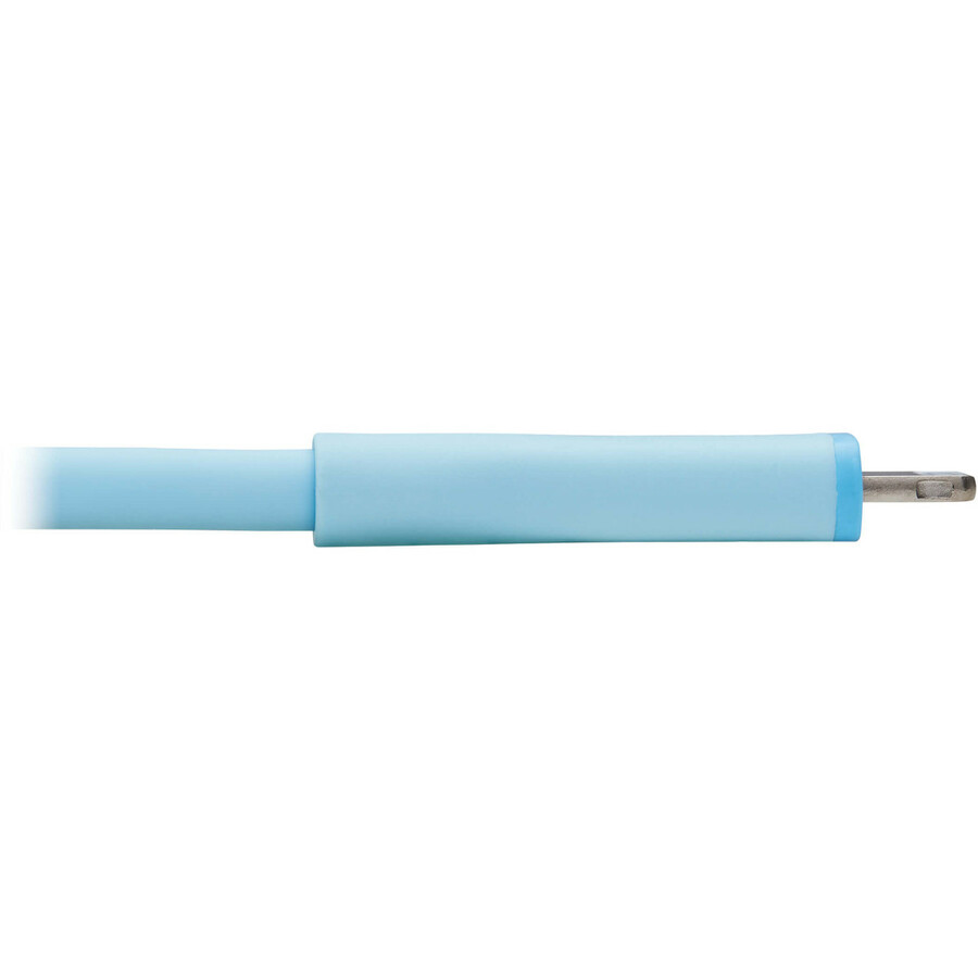The USB cable has a light blue jacket, which is easy to identify quickly in a crowded charging station and helps prevent the cable from becoming accidentally disconnected.
