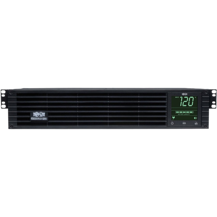 Tripp Lite SmartPro Line Interactive UPS with enhanced LCD interface offers network-grade power protection for critical server, network and telecommunications equipment. Line Interactive Uninterruptible Power Supply(UPS) with built-in Auto-Voltage Regulation(AVR) actively corrects brownouts and overvoltages back to usable levels while maintaining a full battery charge in case of power failure. Tripp Lite’s unique configuration excels in exceptionally poor-power environments with two separate levels of voltage boost to correct both slight undervoltages and severe brownout conditions. Interactive LCD interface reports UPS operating mode, detailed UPS and site-power data, plus enables a variety of UPS setup and configuration options. Super-fast switchover from line to battery power occurs within milliseconds to maintain operation of connected equipment without interruption or reboot. 96% line-mode efficiency offers reduced heat emissions and operating costs. Network management interfaces support communications via USB, RS-232 and optional SNMPWEBCARD network interface. HID-compliant USB port enables integration with built-in power management and auto shutdown features of Windows and Mac OS X. Network communications ports enable detailed monitoring of equipment load levels, self-test data and utility power conditions. Includes PowerAlert monitoring software and complete cabling. Switched output load banks enable scheduled and real-time remote reboot and load shedding of select outlets. Emergency Power Off(EPO) interface. LCD display panel easily rotates for viewing in rackmount or tower configurations. Audible alarm with push-button momentary alarm-cancel and silent-mode configuration options. Programmable self-test. Field-replaceable, hot-swappable battery modules.